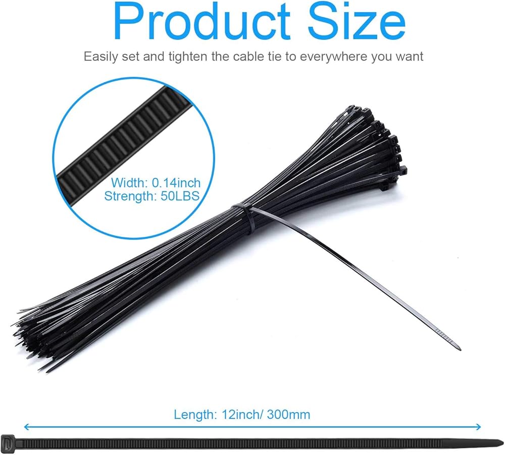 100 Pack Cable Zip Ties Heavy Duty 12 Inch, Premium Plastic Wire Ties with 50 Pounds Tensile Strength, Multi-Purpose Self-Locking Black Nylon Zip Ties for Indoor and Outdoor
