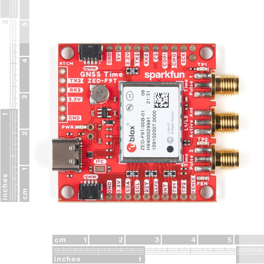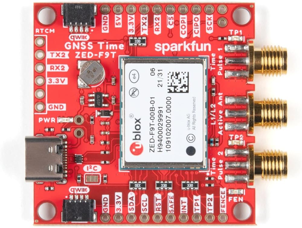The SparkFun GNSS Timing Breakout offers a unique entry into SparkFun's geospatial catalog featuring the ZED-F9T GNSS receiver from u-blox. The ZED-F9T provides up to five nanosecond timing accuracy under clear skies with no external GNSS correction making it perfect for applications where timing accuracy is imperative. Need an extremely accurate time reference to maximize the efficiency of your IoT network of 5G devices? The ZED-F9T GNSS Timing Breakout could be the perfect solution.