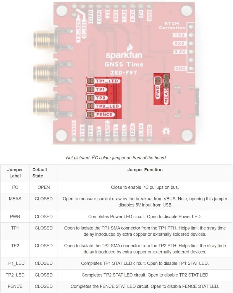 This breakout shares a similar design as the SparkFun GPS-RTK-SMA Breakout to create a small but comprehensive development tool for the ZED-F9T. The design includes a USB-C connector for primary power and communication, two Qwiic connectors for communicating over I2C using the SparkFun Qwiic system, three SMA connectors for the antenna and timing pulse signals as well as a host of PTH pins allowing direct interaction with most of the ZED-F9T's pinout. The GNSS Timing Breakout also includes an on-board rechargeable backup battery that provides power to the RTC on the ZED-F9T. This reduces the time-to-first fix from a cold start (~24s) to a hot start (~2s).