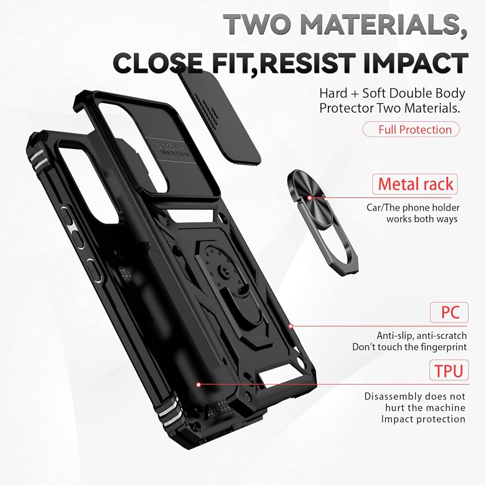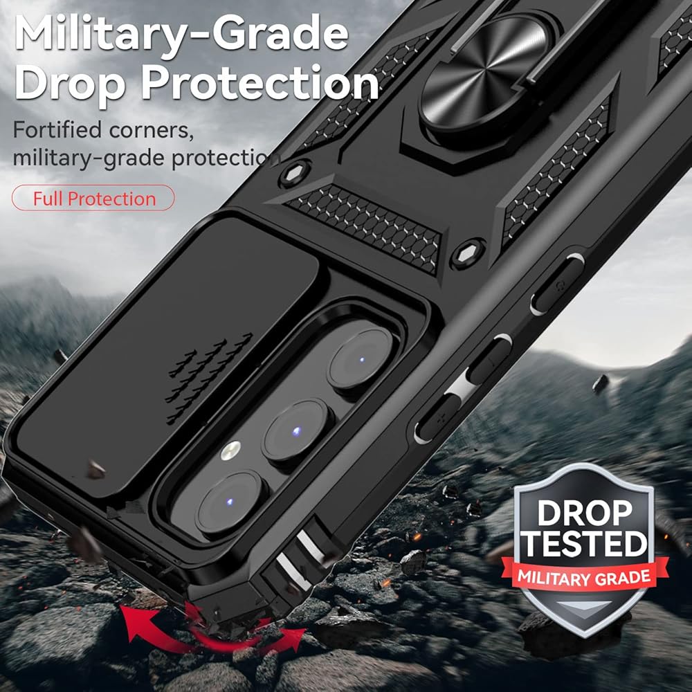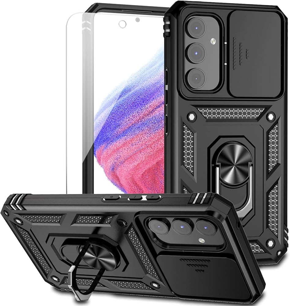 for Samsung Galaxy A54 5G Case with Slide Camera Cover HD Screen Protector [Military Grade 16ft. Drop Tested] Magnetic Ring Holder Kickstand Protective Phone Case for Samsung Galaxy A54 5G, Black