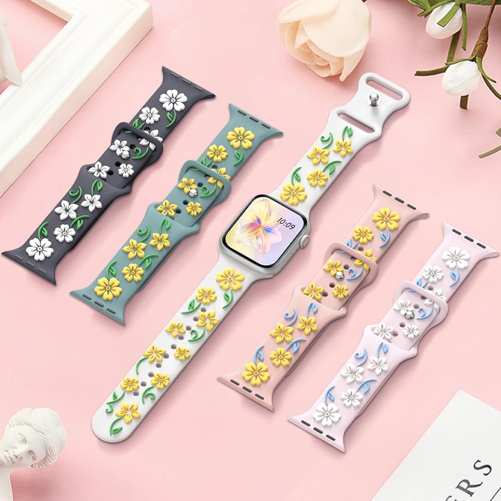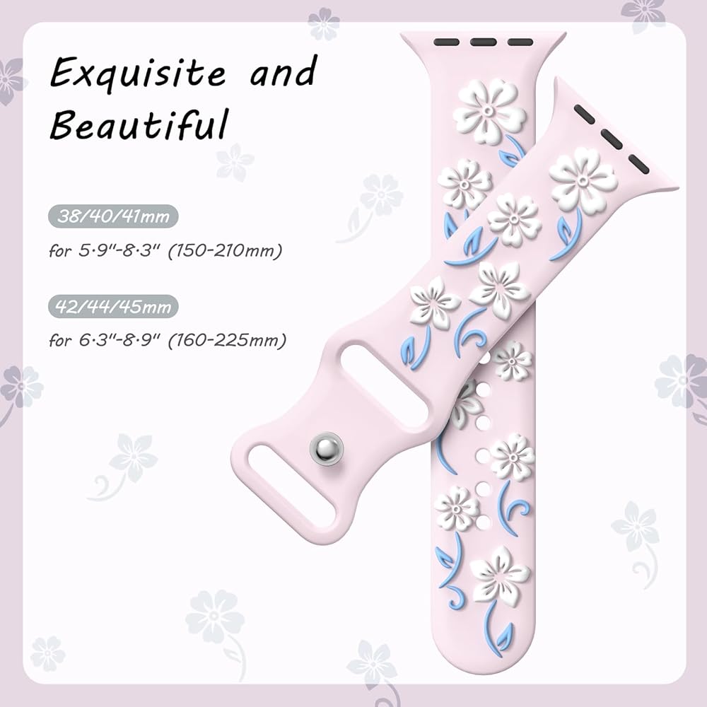 【Compatible Models】TreasureMax silicone engraved flower Apple watch band compatible with apple watch 41mm 40mm 44mm 45mm 38mm 42mm 46mm 49mm women, for iwatch bands series 9, series 10, series 8, series 7, series 6, Series 5, Series 4, Series 3, Series 2, Series 1. And for apple watch SE(2nd Gen),for apple watch ultra 49mm, for apple watch ultra 2, Fit All Models.