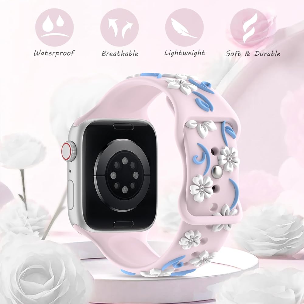 【Newest Tricolored Floral Embossed Design】This TreasureMax exquisite embossed flower apple watch bands for women feature a unique tricolor 3D love heart floral design.The unique flower shape and color of this iWatch bands for women make your smartwatch more charming and elegant, make you more attractive in the crowd.