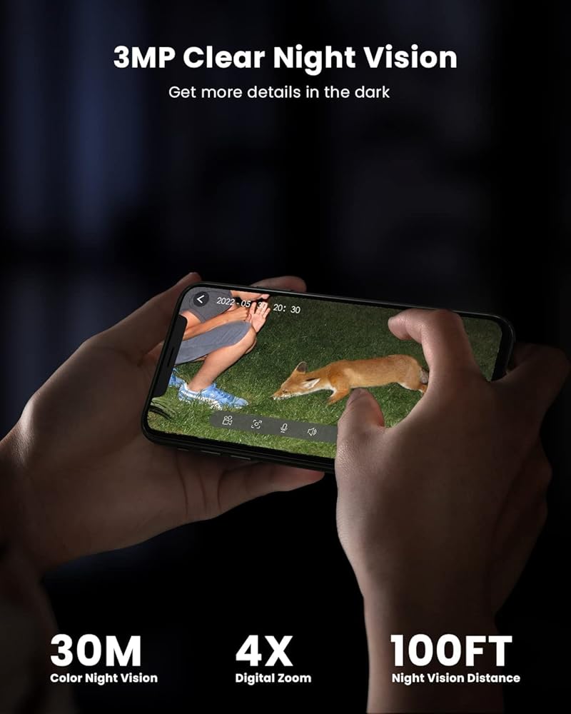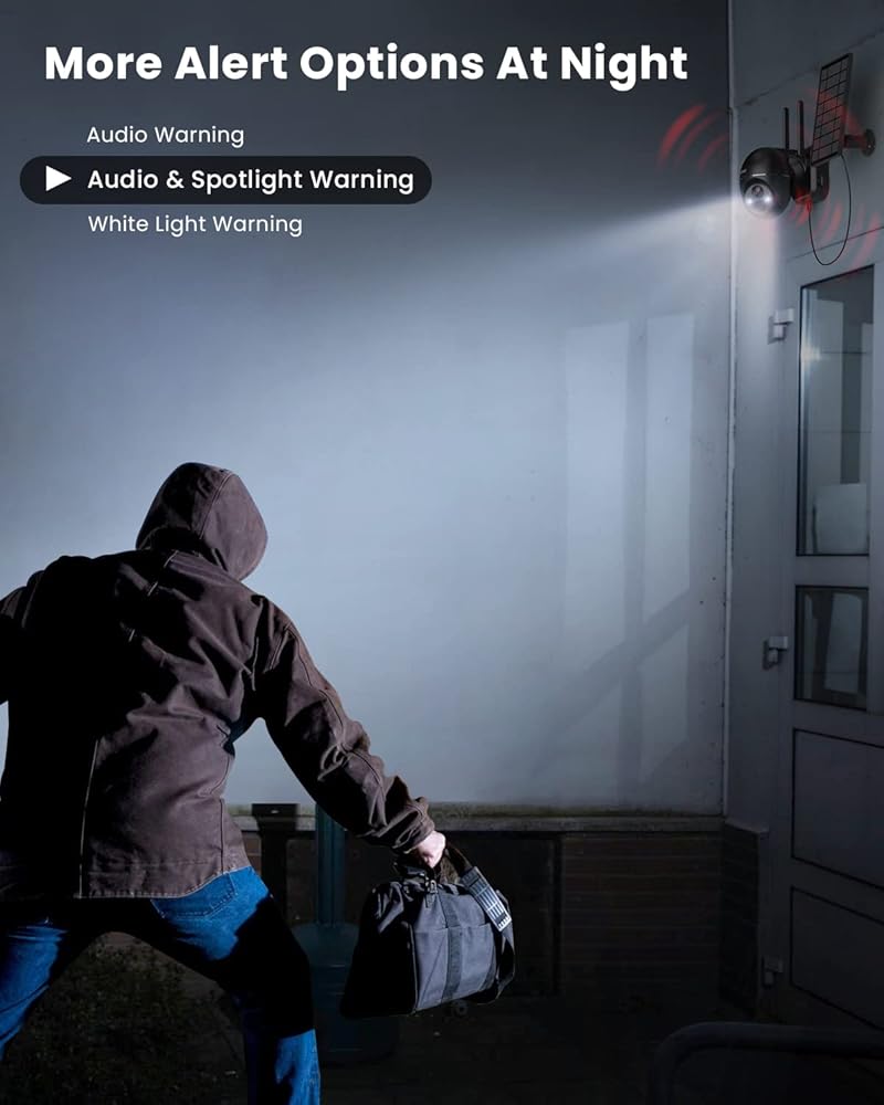 【2K Color Night Vision & 360°PTZ View】Surveillance ultra-clear 3MP LTE security camera with 355°pan and 120°tilt allows you to look around your property of plants and warehouses. Built-in infrared sensor, with spotlights, Support automatic/manual lighting or siren alarm, supports 4X digital zoom. Everything is in your control.