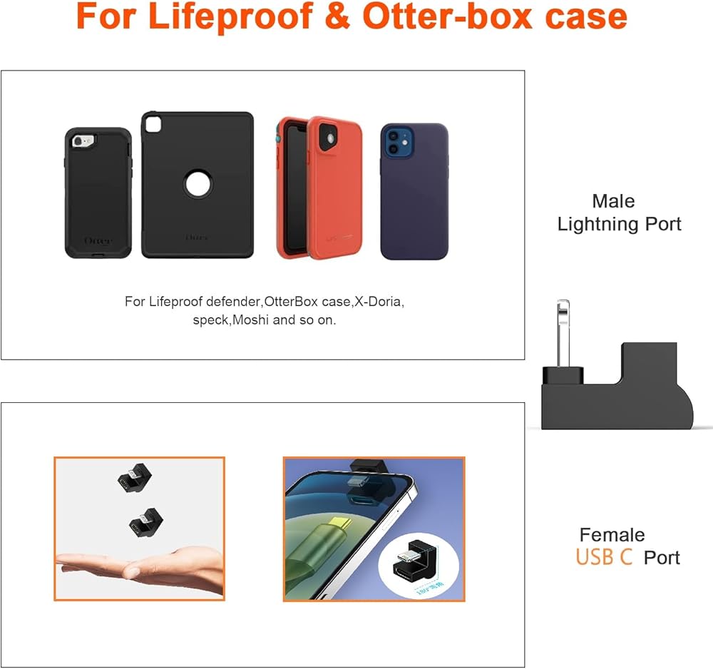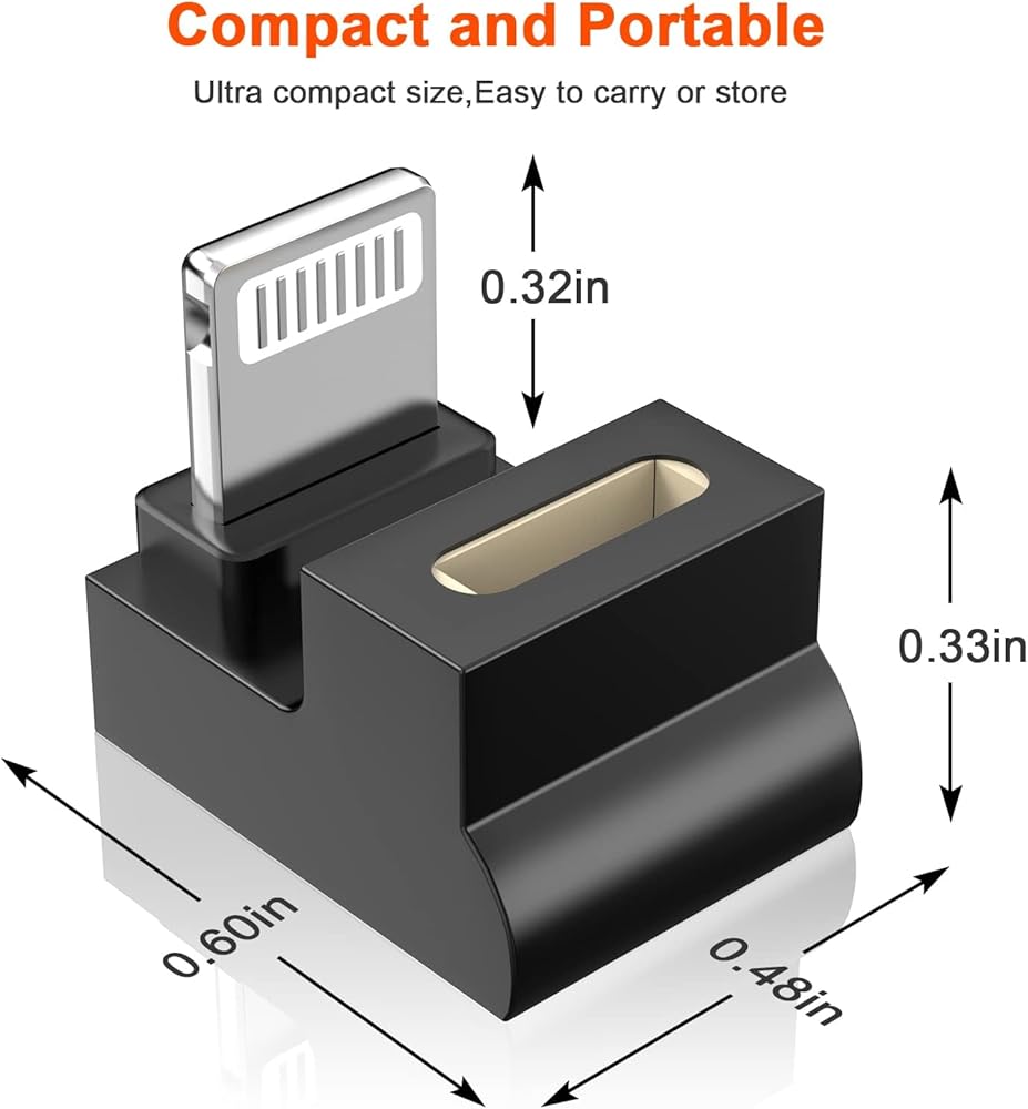 • 【Fast Charging and Data Transfer】The 90 Degree iphone charging Connector adapter supports up to 27W(9V/3A) fast charging, and supports 480Mbps(40-60MB/S) data transfer speed. NOT Support OTG, Video, Headphones, Microphone, Keyboard, Mouse, U Disk, Hubs, Card Reader, etc.