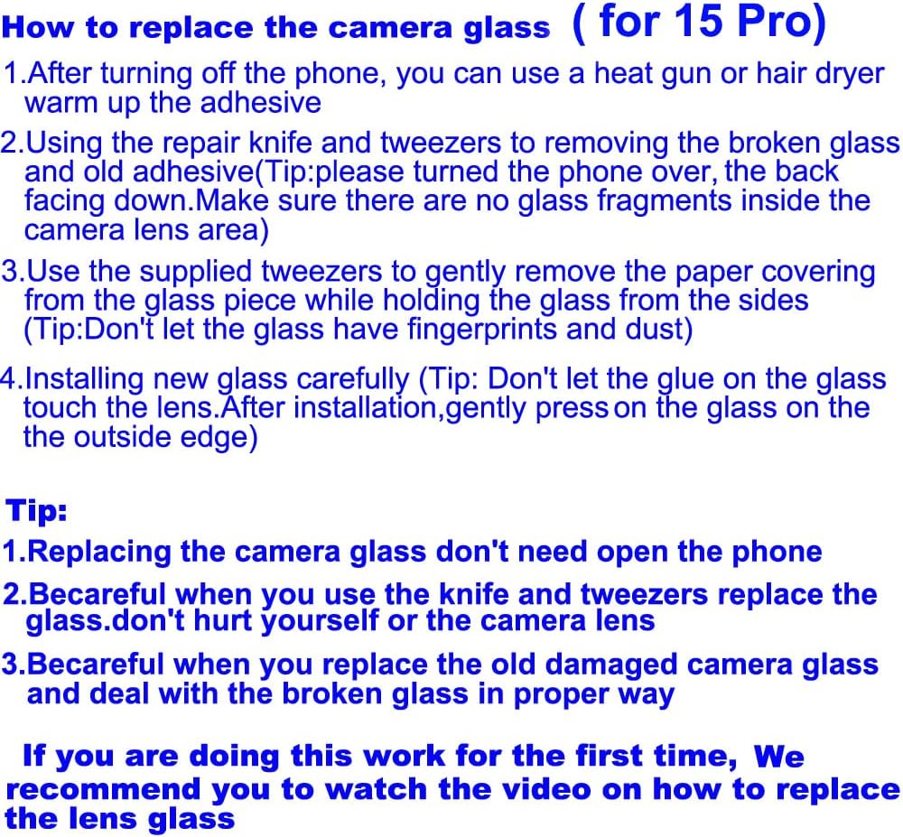Please becareful when you replace the damaged rear camera glass lens for iPhone 12 pro and deal with the broken glass in proper way. Installation manual included in the package.If you are the first time to do this job,we also suggest you watch relevant repair videos in internet,Watching the vidoes can help your DIY more smooth