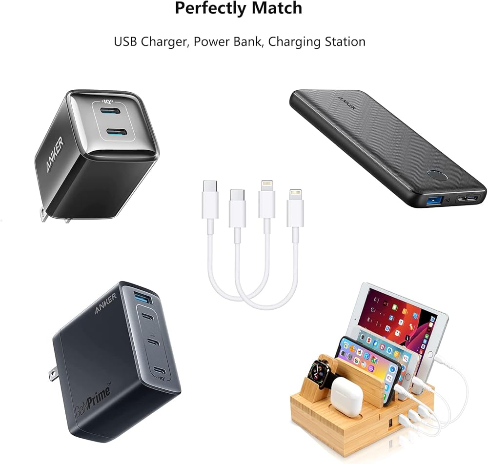 Short USB C to Apple Charger Cable, 2 Pack Short Charging Cable Compatible with iPhone 14 13 13 Pro 12 Pro Max 12 11 X XS XR 8 Plus, AirPods Pro and More(0.75ft/9inch/23cm)