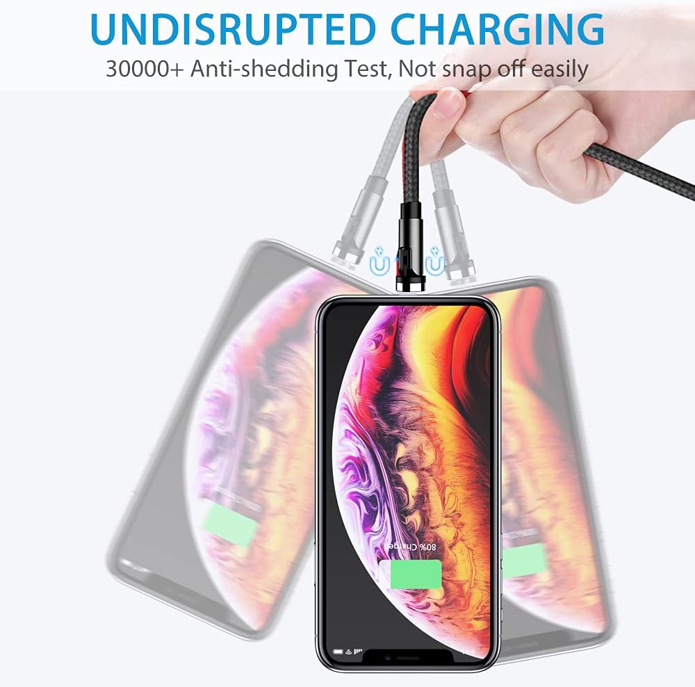 USB Magnetic Cable Micro USB and Type C 3in1, 90 Degree Right Angle,Nylon Braided Cord,360 Magnetic Charging Cable with Led Light 3in1 Design&Wide applicability 90°L shape &360°rotating magnetic head One hand operation&Led light