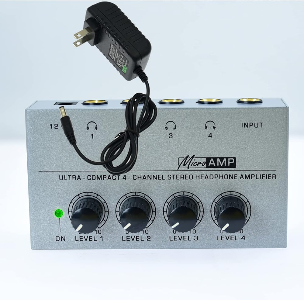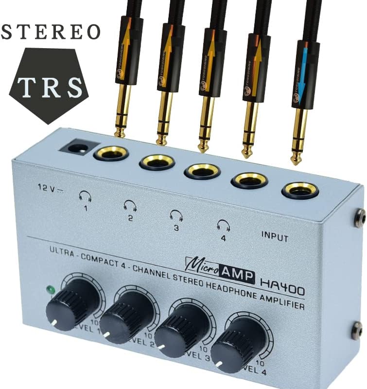 【1 in 4 out】 4-channel amplifier, 1 input and 4 outputs, a total of 5 volume knobs: no audio burst. When all four headphones are connected, the signal will not be lost. The headphone amplifier 4 channels can be operated simultaneously.