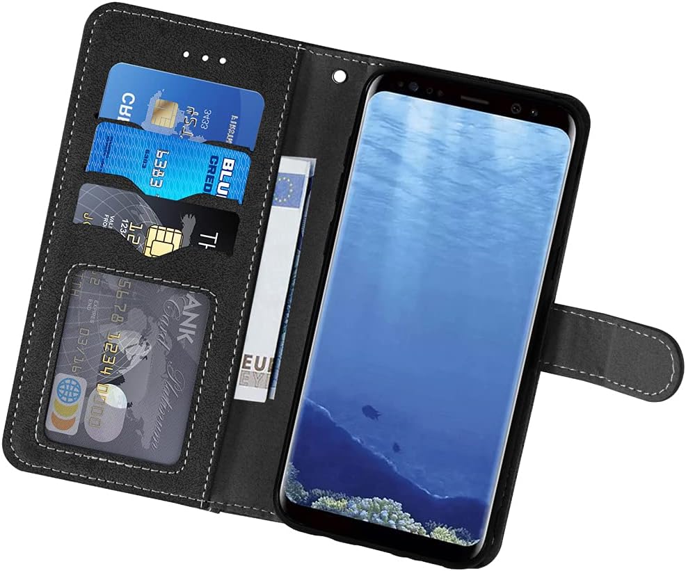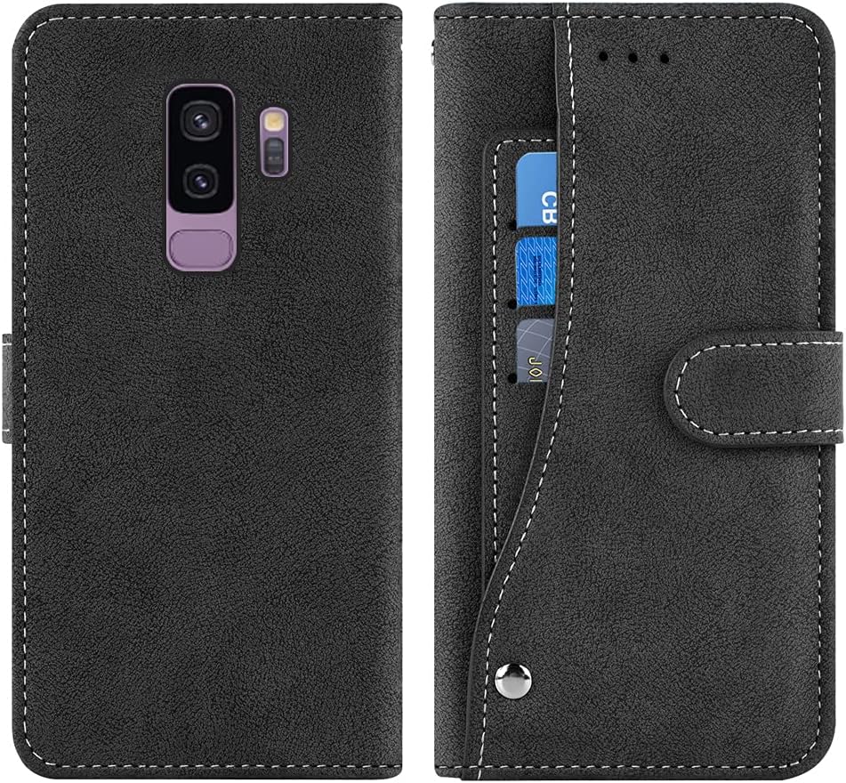 Asuwish Compatible with Samsung Galaxy S9 Plus Wallet Case and Tempered Glass Screen Protector Flip Cover Card Holder Cell Accessories Phone Cases for Glaxay S9+ 9S 9+ S 9 9plus S9plus Women Men Black