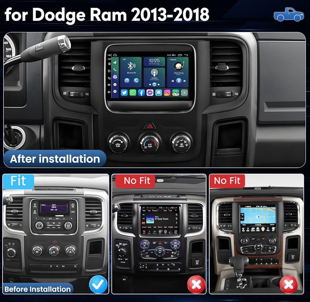 Ram 1500 Radio Upgrade : Android 12, 7 inch HD touch screen, 4 core 2G(RAM)+32G(ROM), offline/online GPS navigation, Wifi connection, FM/RDS radio, 2 USB, 16 EQ adjustable, with waterproof HD rear view camera, support steering wheel control. This Ram stereo replacement is perfectly suitable for 2013-2018 Ram 1500 radio upgrade, and no need to purchase additional accessories