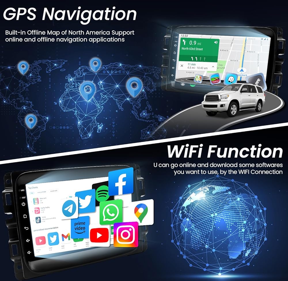 5G WiFi & GPS & Hands-Free Calling : Say goodbye to the dated factory radio! This Ram stereo replacement has an offline North America map, which can help you drive safely in areas with weak or no cellular signals. Stay connected while driving with incoming and outgoing calls, address book sync, and mobile phone music playback