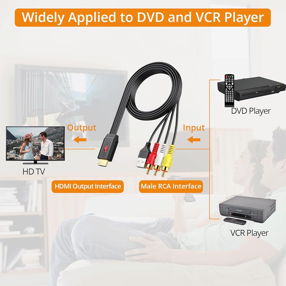 【Compact and Lightweight Design】With its compact and elegant appearance, this RCA to HDMI cable is not only visually appealing but also wall-mountable, optimizing space usage. Elevate your audio-visual setup with a touch of sophistication, creating a cozy and stylish viewing ambiance.