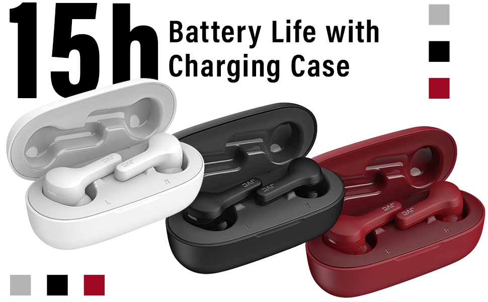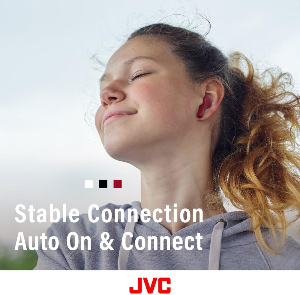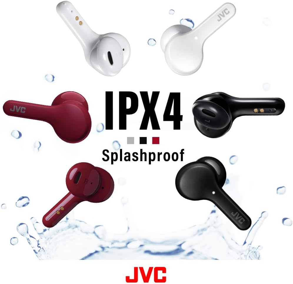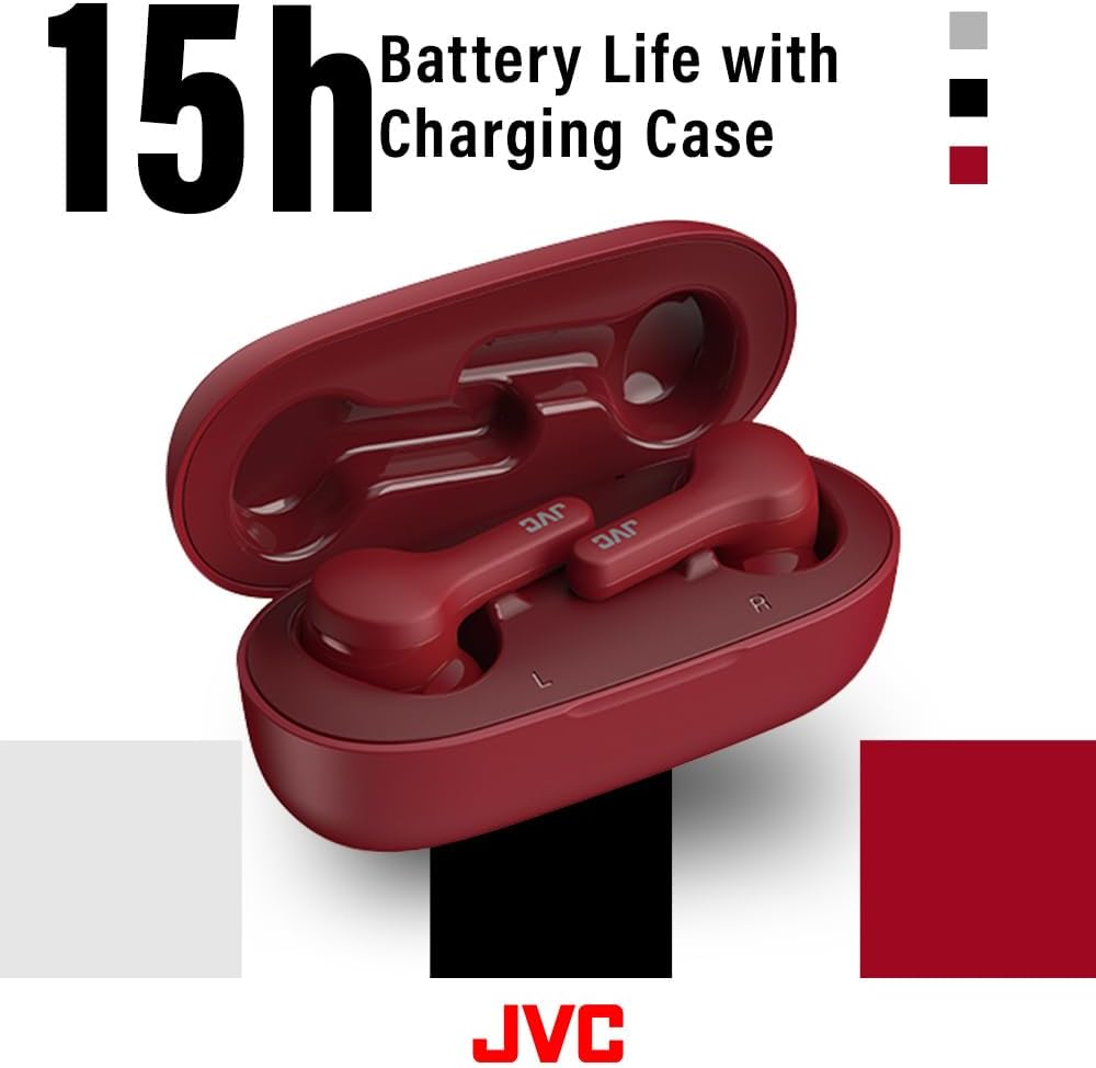 The JVC truly wireless earbuds are comfortable sound based on 11mm driver. The IPX4 rating offers water resistance to splashing, making this pair ideal for outdoor use. Bluetooth 5.0 technology ensures a dependable connection. These JVC wireless headphones come with a compact charging case, delivering up to 15 hours of playback.