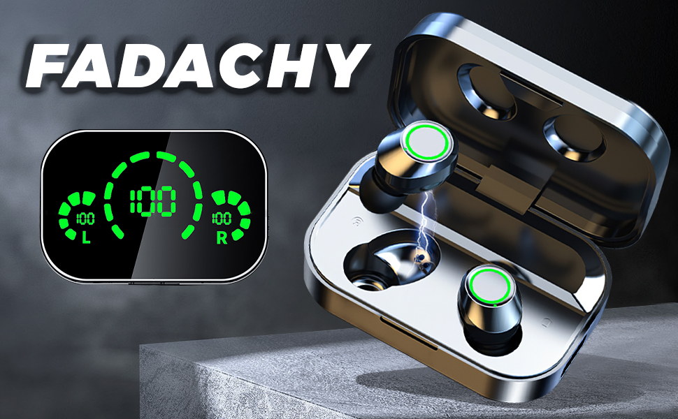 FADACHY Earbuds,Bluetooth 5.3 in Ear Headphones Built-in Microphon,HiFi Stereo Sound,LCD Recharger Case,Touch Control Earphones for Sport Running Waterproof,Blac