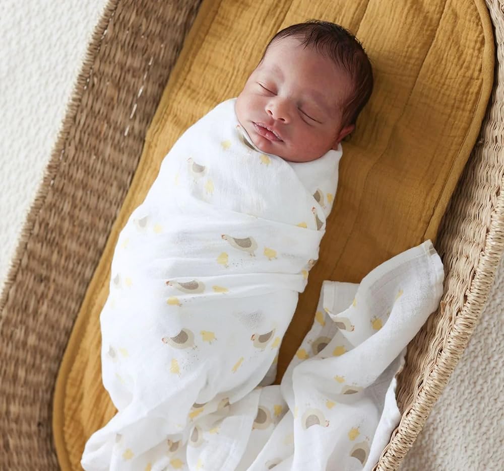 Wrap baby up in the soft embrace of these extra-large swaddle blanket. 100% Cotton, 40 x 40-inch square blanket is made with finely woven muslin cloth. This soft and breathable blanket helps baby feel safe and secure while swaddled and prevents spontaneous movements (startle reflex) from waking them. Durable and versatile, it can also can be used as a nursing cover, change mat, over the shoulder burp cloth, stroller cover, and more. Machine washable muslin is pre-washed, dual layer, and becomes softer with use. Machine wash cold with like colors, tumble dry low. Brought to you by Lulujo Baby, a proudly Canadian company behind premium baby essentials. At Lulujo Baby, our love is in the details.