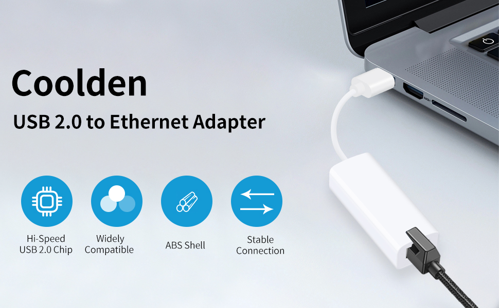 Coolden USB to Ethernet Adapter for Laptop Ethernet to USB Adapter USB 2.0 to RJ45 10/100/1000 Mbps USB Network Adapter Driver Free & Portable Supporting Window/Mac OS, Surface Pro/Linux (White)