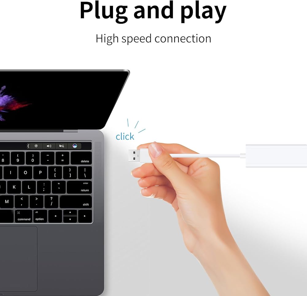 【Steady Transmission】 Ethernet to usb adapter supports 10/100/1000 Mbps at fast USB 2.0 speeds, giving a full play to the performance of your network and is the perfect solution to maintain a safe and smooth network during online work, needed meeting, teaching, gaming, HD video streaming, uploading, downloading and more.