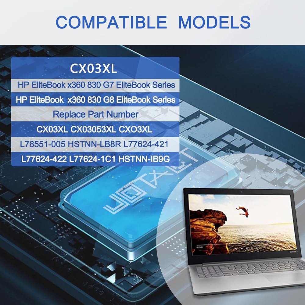 【Specifications】Item Model: TA03XL ; Product Type: Replacement battery; Battery Type: Li-ion; Number of cell: 6 cell Voltage:11.55V; Capacity: 51Wh 4420mAh ; Battery Life: Up to 500 recharge cycles over the life of the battery.