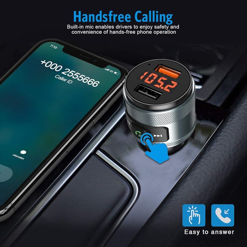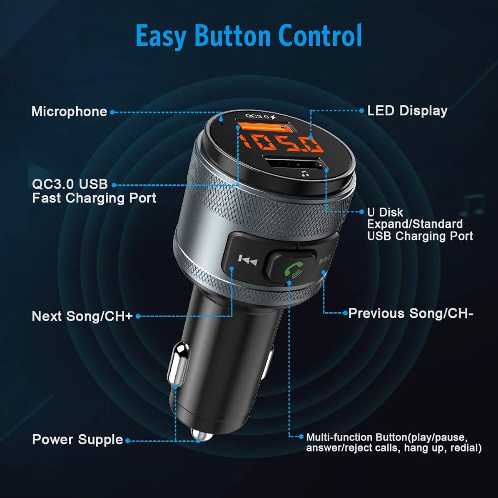 【Hands-FREE CALLING】- Built-in microphone, this Bluetooth FM transmitter enables you to answer, hang up, reject a call or redial the last number with ease. You can use multi-function button controls call and music.