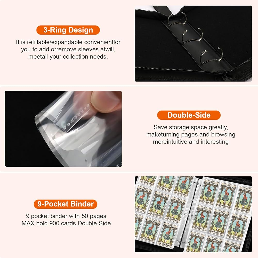 Card Binder 900 Pockets: 9 Pocket binder with 50 pages of sheets can hold up to 900 cards, providing plenty of space to get all your cards organized. providing the perfect balance of protection and accessibility.