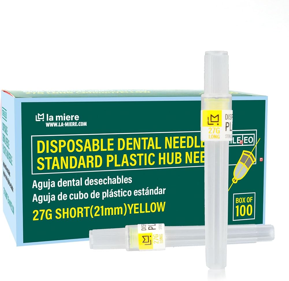 LA MIERE 100P Disposable Premium Dental Plastic Hub Needles in Perforated Box 27G , Length 21mm