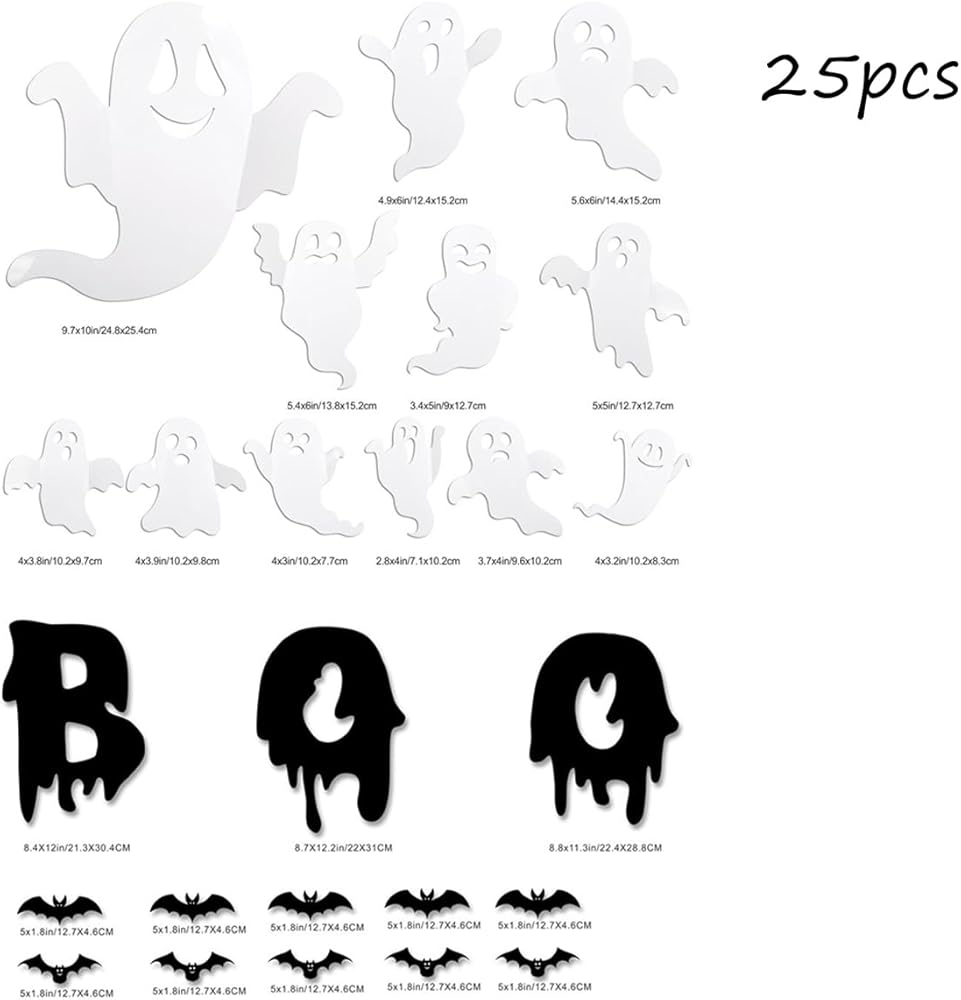 Halloween Ghost Decor: You will get 12Pcs cute ghost wall stickers with12 double-sided tape stickers. These Halloween wall decals are perfect for Halloween decor.