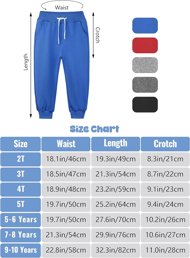 Easy Wear, Easy Care: Our toddler boys cotton jogger pants feature an elastic waistband with a functional drawstring for effortless wear. Ideal for boys of different ages, our boys athletic pull-on pants come with handy pockets for all their little treasures. Plus, the boys athletic pants are machine washable for your convenience