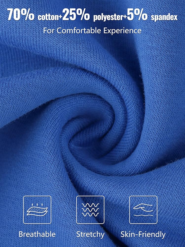 Stay Active in Comfort: You will receive a value pack of 5 toddler boys cotton jogger pants. Embrace the great blend of comfort, durability, and flexibility with our toddler boys sweatpants. Crafted from 70% cotton, 25% polyester, and 5% spandex, the boys active pants with drawstring are designed to keep boys comfortable and moving freely all day long. Breathable, soft, and just the right fit for any activity