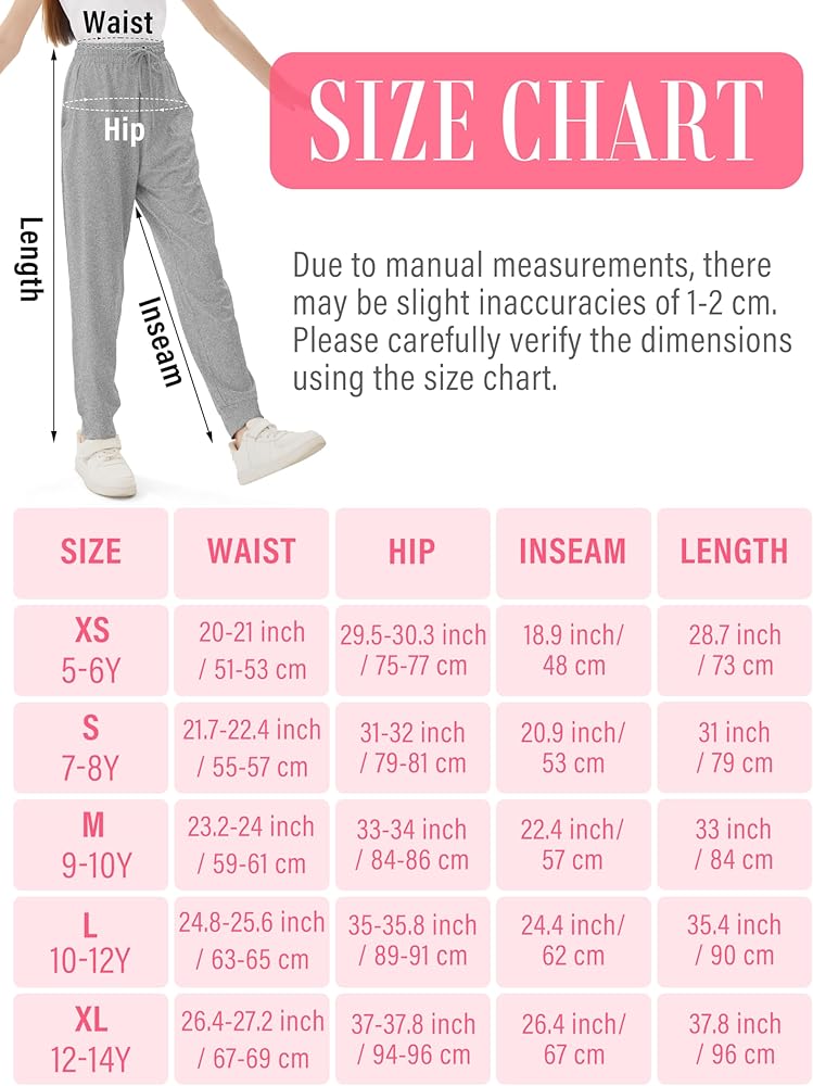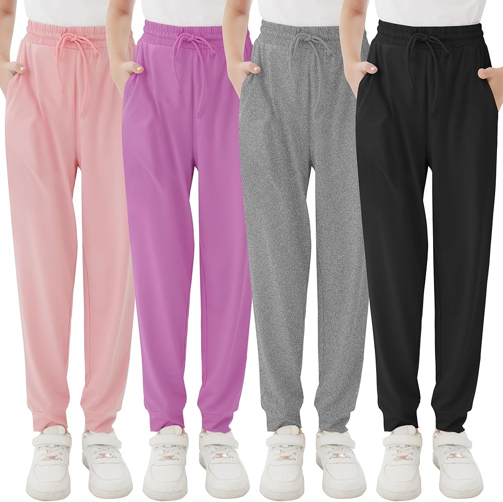 Multiple sizes and colors: girls' dry-fit jogger sweatpants are available in assorted sizes for ages 5 to 14; the versatile color options make these girls' athletic joggers pants can easily match various outfits