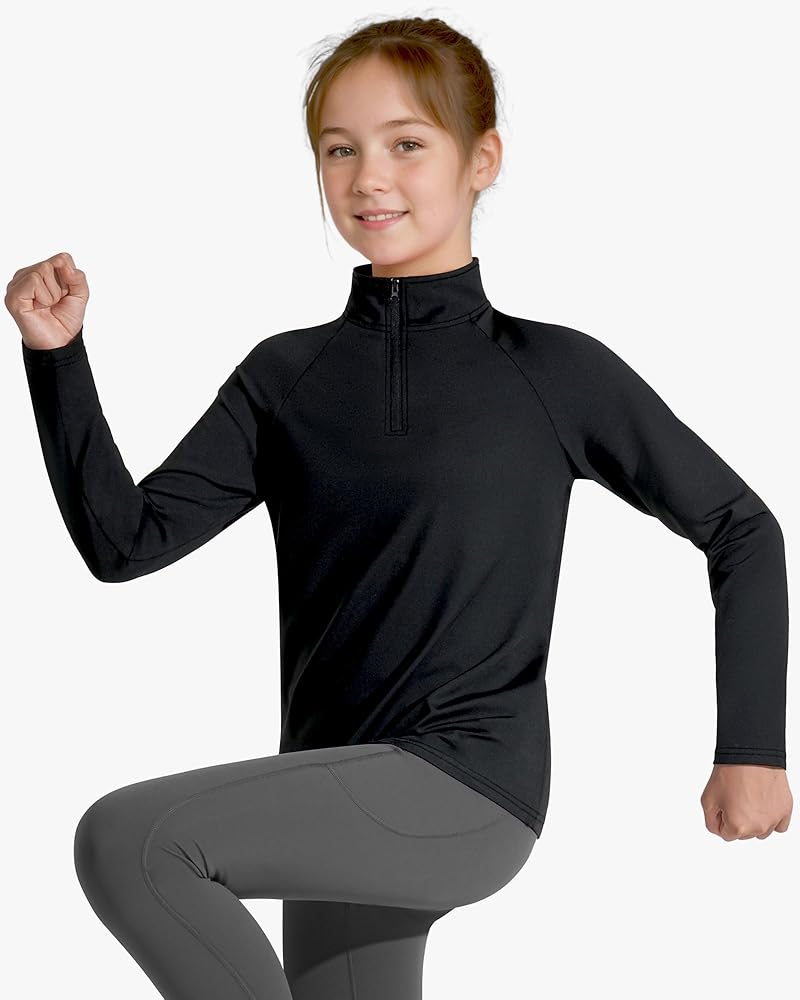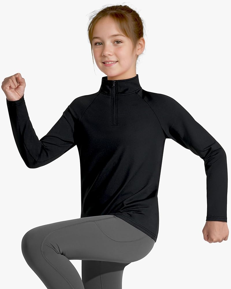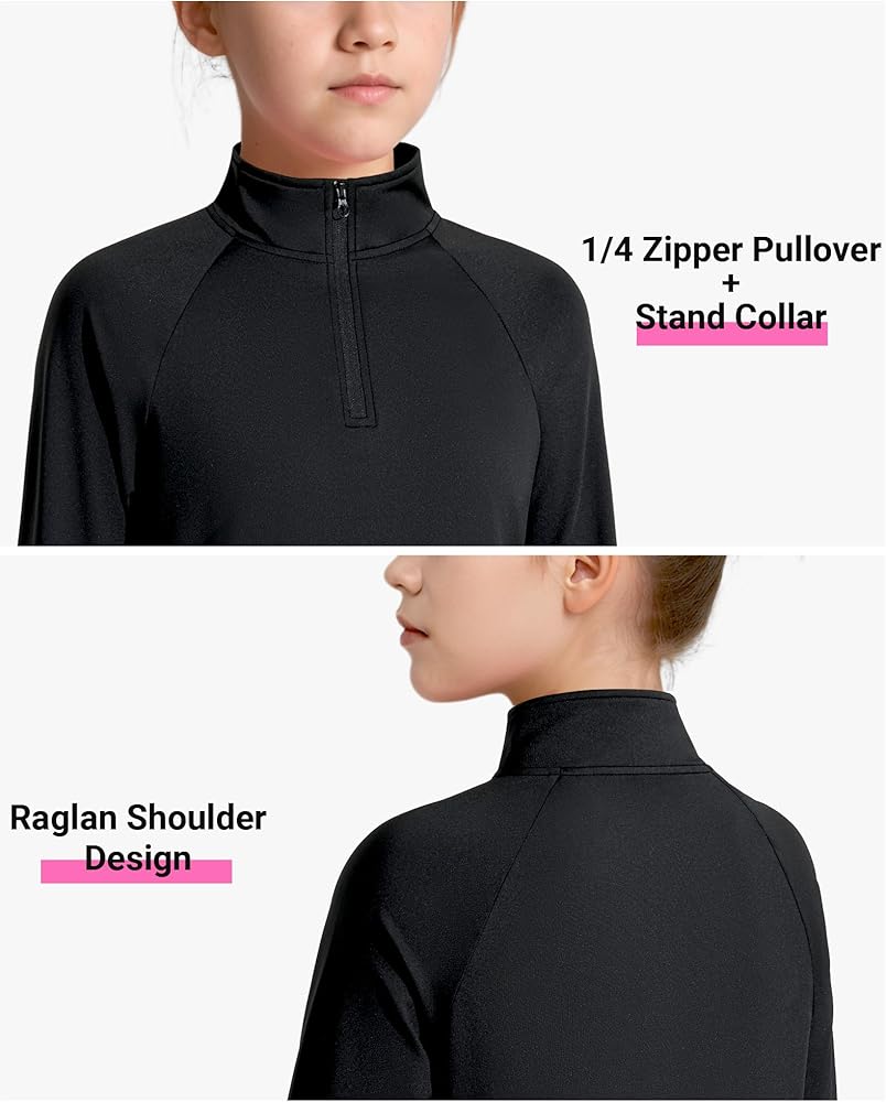 Raglan and 1/4 zipper design: The girls long sleeve shirts adopts a 1/4 zipper stand-up collar design, which is easy to put on and take off without getting stuck. The raglan sleeve design can avoid chafing the child, making the line from the shoulder to the body natural and smooth