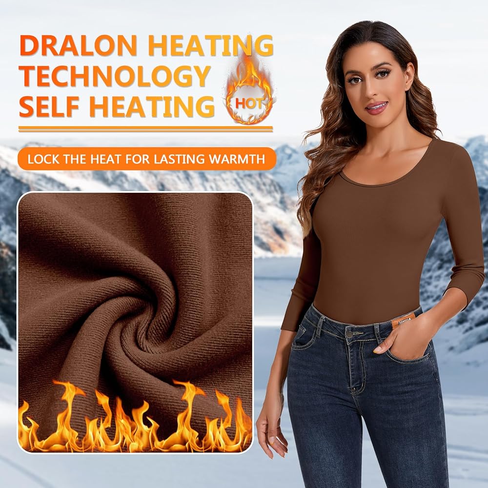 【Womens Long Sleeve Base Layer Tops】3/4 sleeve tops/winter warm shirts features a classic wide crew necklines, the low neck line and 3/4 sleeves allow the shirt to work with a variety of layering options!