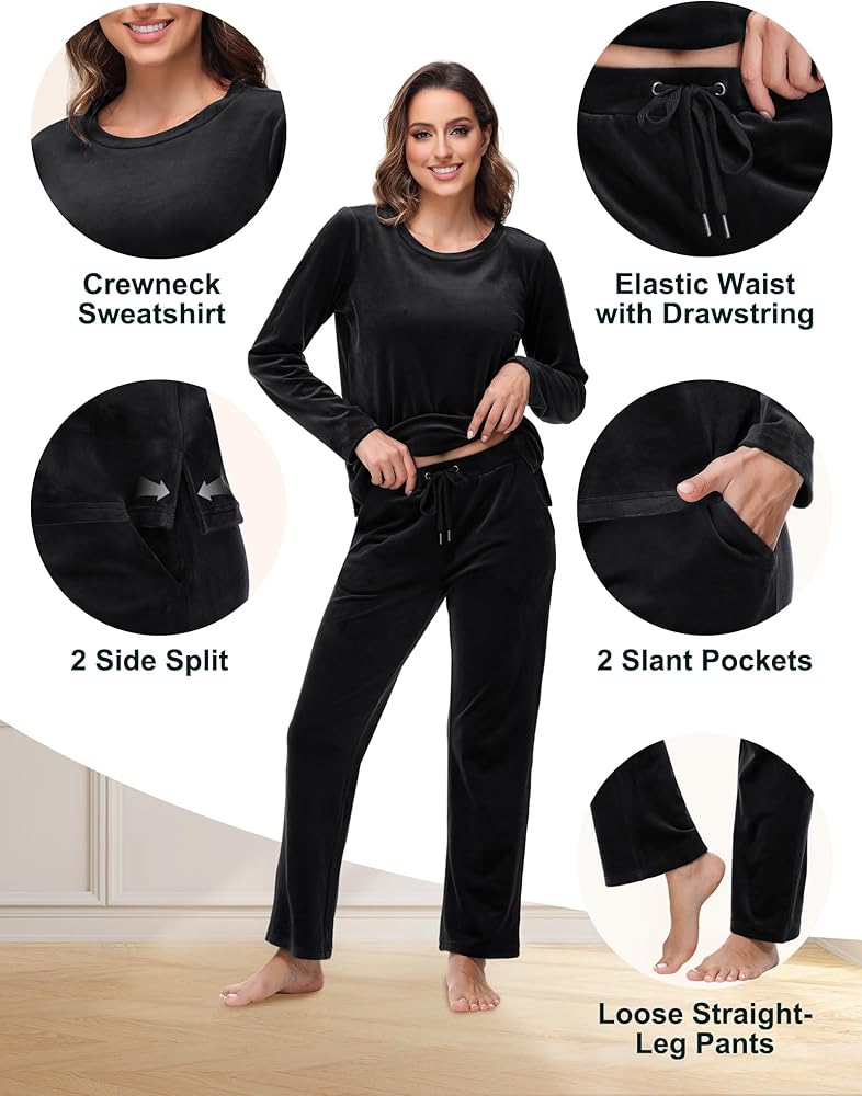 Comfortable All-Day Wear: Whether you're relaxing at home or running errands, this velour lounge set is your go-to ensemble for effortless style and comfort