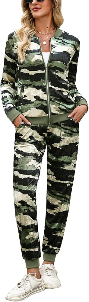 2 PIECES TRENDY OUTFITS- 2 pieces velvet tracksuit sweatsuit set including a jacket and a coordinating velvet jogger sweatpants that make a beauty of coordination which is on trend. Velvet material to lock in warmth and sustain a flattering fit