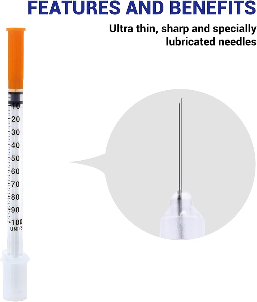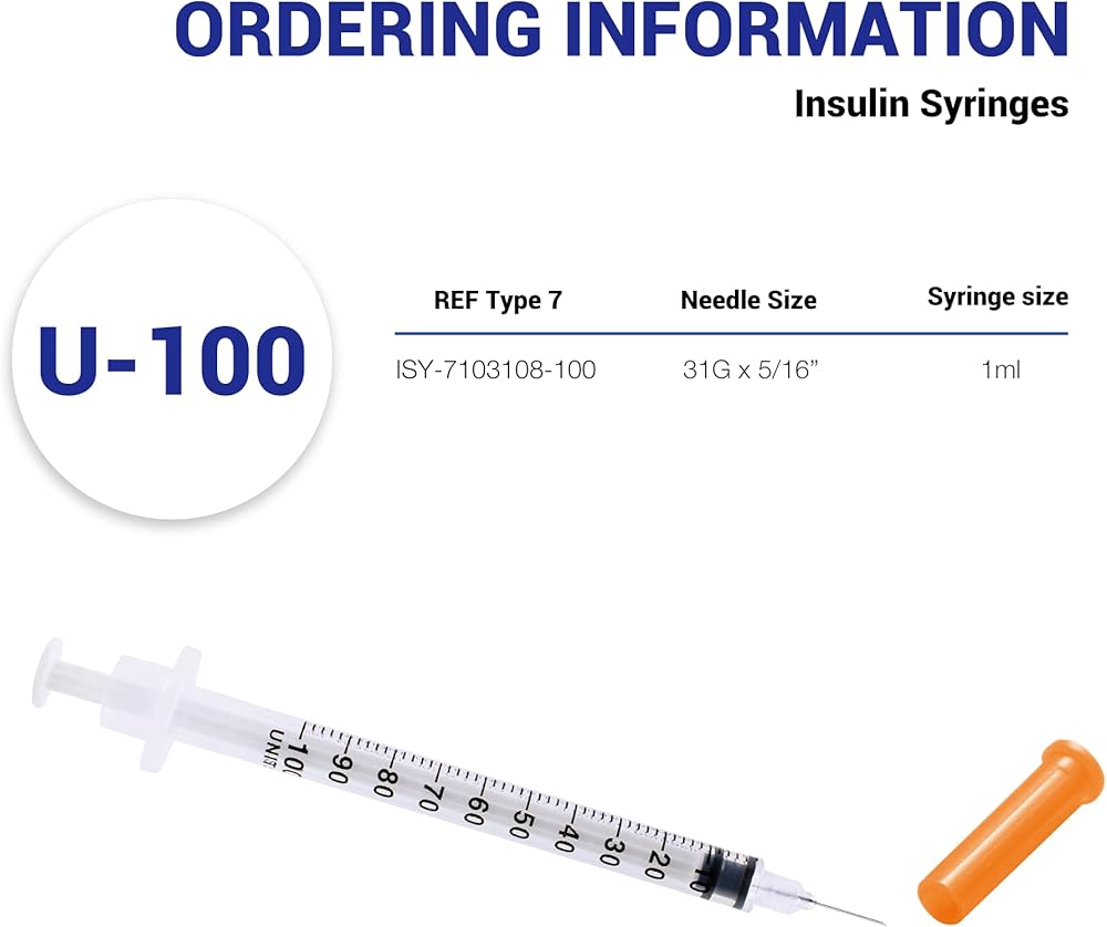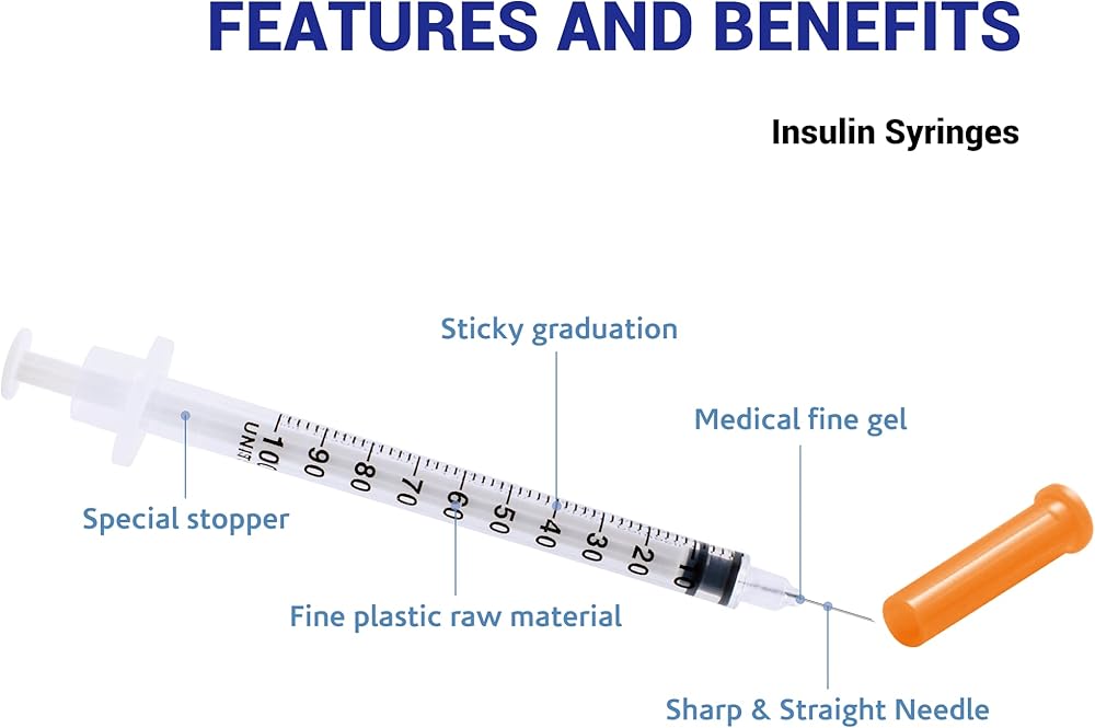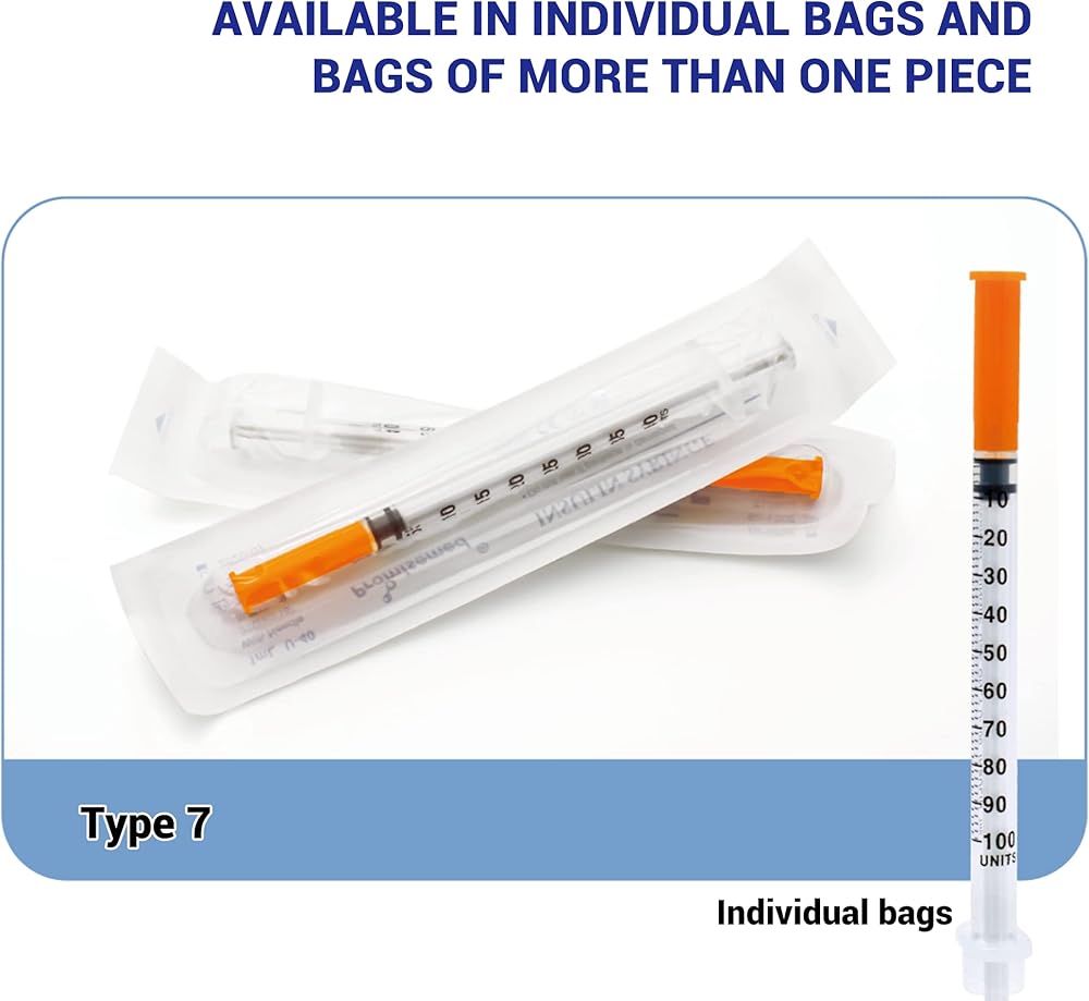U-100 Insulin Syringe, 31G 5/16“ 1cc Individually Sealed (100 Counts)