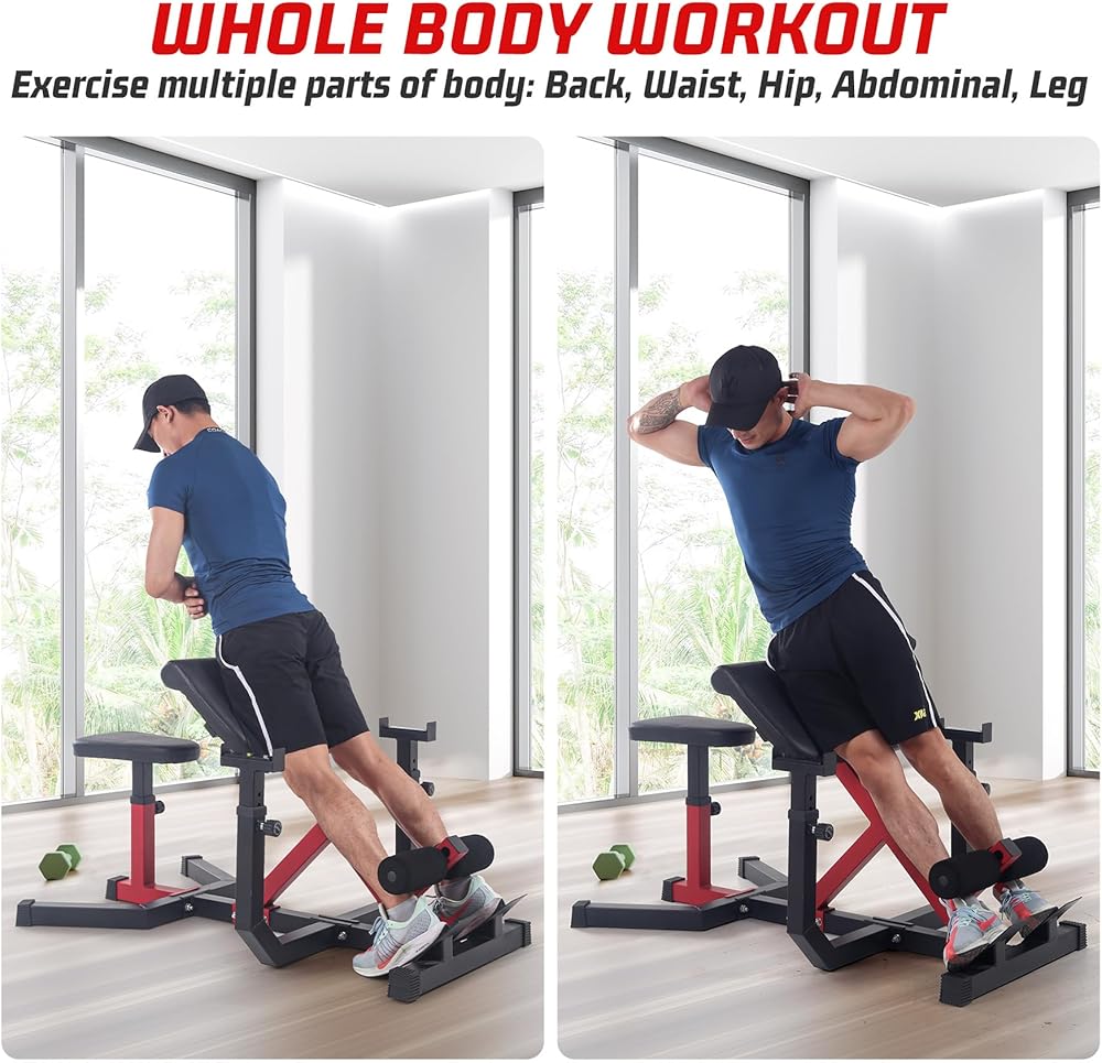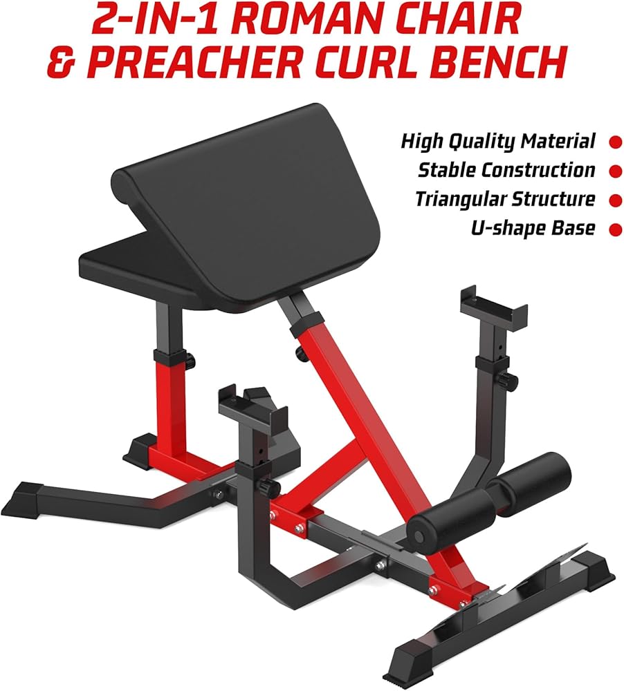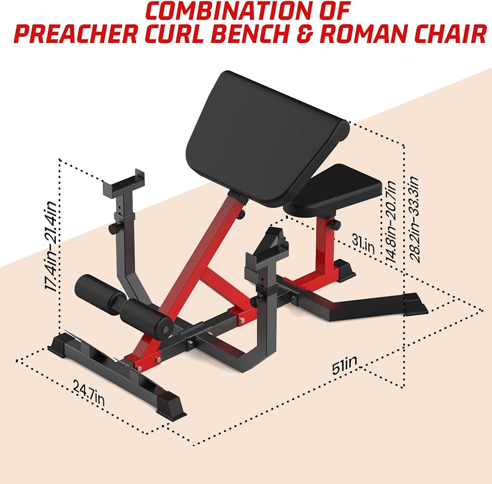 Our GarveeLife 2-in-1 roman chair and preacher curl bench combines the functions and advantages of both machines together, providing whole-body workout from arms, back, waist, ab, glute to legs.