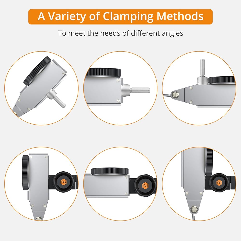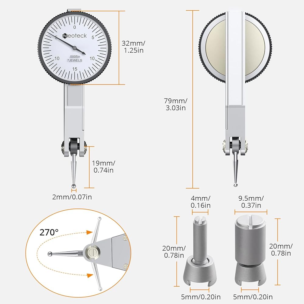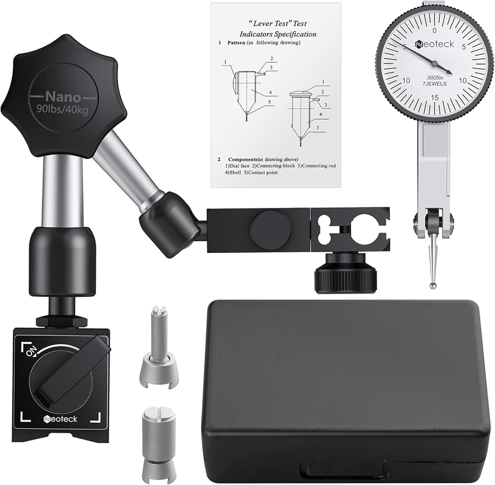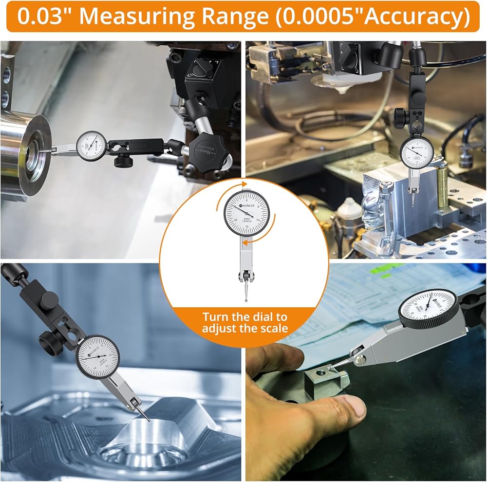 【Accurate Test Indicator】Neoteck dial scale on dial indicator with base is visibly clear and adjustable through the rotation of the dial casing.This feature ensures easy readability of measurements and allows for precise adjustments, making it ideal for applications in machining, engineering, automotive, and other industries where precise measurements are essential