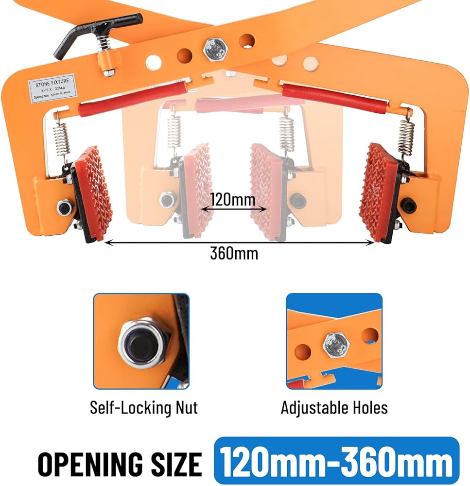 716LBS Granite Slab Stone Clamps, Heavy Duty Steel Stone Lifting Clamp, Vertical Rock Carrying Fixtures for Marble Slate Brick Timber, 120mm-360mm Opening Size
