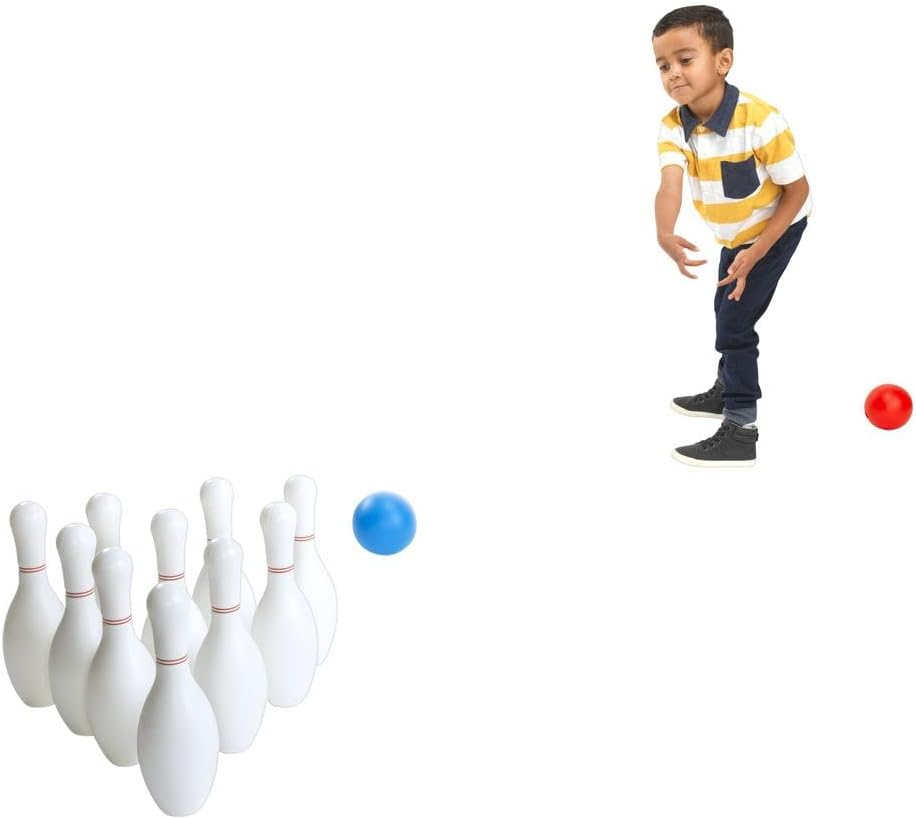 GROSS MOTOR FUN: Encourage children to get up and move with this fun bowling set. Children will love rolling the ball to knock over the pins. A great activity for parties, physical education class, re