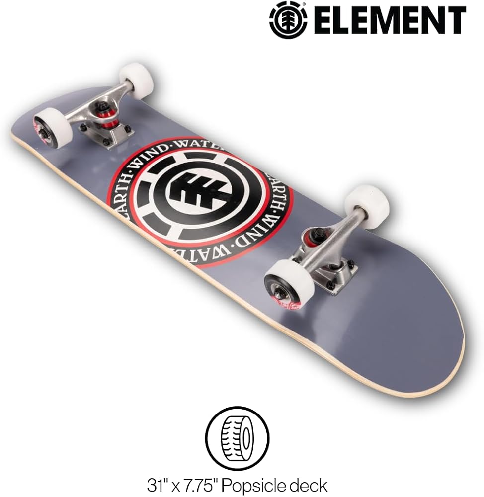 Element Icon Gray Skateboard 31" x 7.75" Complete Popsicle Board for Kids, Teens, Boys, Girls, and Adults Deck with a Weight Limit of 220 lbs for All Skill Levels