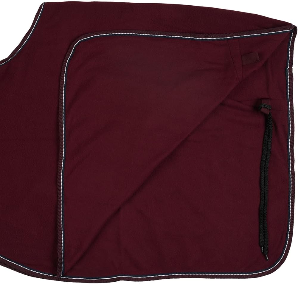Soft riding blanket in gorgeous color combinations. The Horze Kiel riding blanket is made from soft fleece to keep your horse warm on rides. It can easily be attached with a hook-and-loop fastener and tail cord. Pretty piping along the trim completes the look.