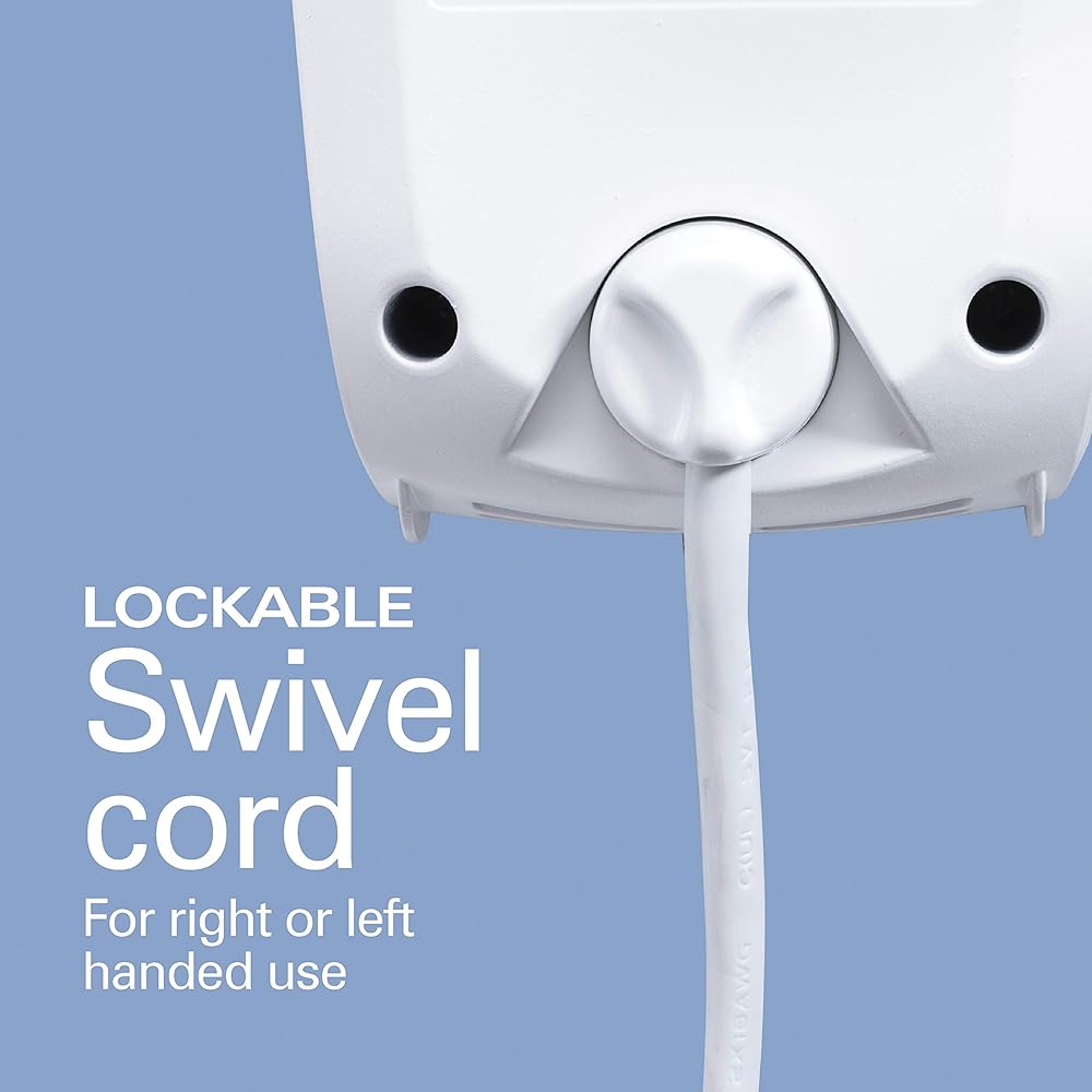 Swivel cord for right or left handed use. Cord adjusts and locks into place to stay out of your way.