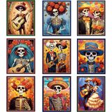 Adduster Day of The Dead Poster - 9 Piece Day of the Dead Decorations Sugar Skull Wall Art Sugar Skull Art Print for Mexico Day Day of the Dead Halloween Wall Decor Living Room Decor