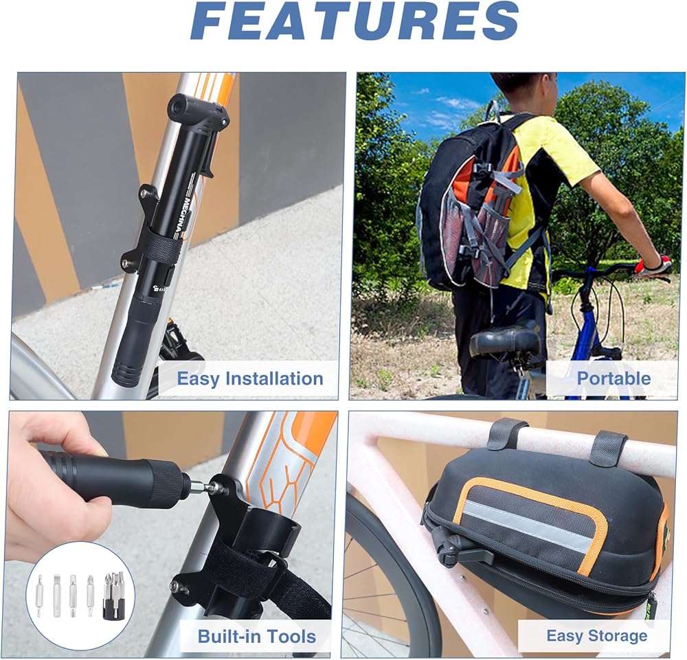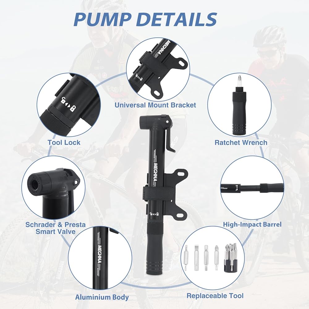 Multifunction Tools: Multi-function ratchet tool in the pump handle, you can use it just unscrew it. There are 8 different kinds of allen keys tool kits, meet your different repairing needs.It is an excellent company for your riding.