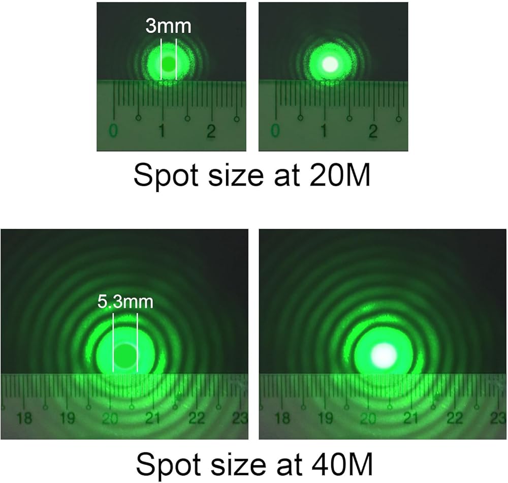 Beam Divergence: Spot size at 130 ft.(40 meters):
