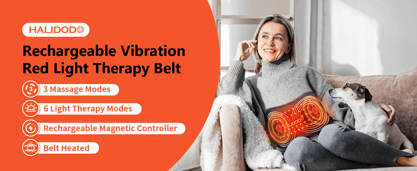 HALIDODO 2024 Gifts for Mom Upgraded Red Light Therapy Belt & Vibration Back Massage Heated Red Light Therapy Device for Body - Magnetic Controller, 660nm&850nm, for Back Shoulder Muscle Pain Relief