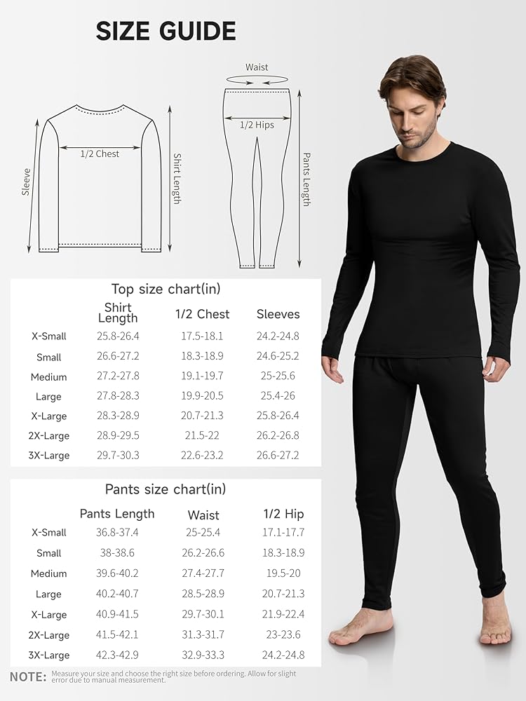 Versatile Thermal Set for Men: Our winter clothes for men are non shrinking and non fading after machine wash, which are nice for hunting, hiking, and skiing or as a Christmas present to your father and friends