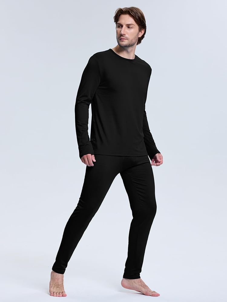 Quality Long Underwear Mens: Our thermal underwear for men is made from quality polyester and spandex, which is soft, elastic and moisture wicking to keep you dry and easily stay away from the clammy feeling