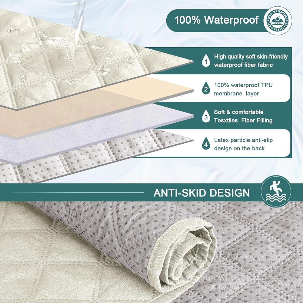 • WATERPROOF MATERIAL: Made of choiceness material, quilted from 4 layers fabric. The outer layer is made of waterproof polyester and the inner-layer is filled with thick fabric to make it more soft. It would be a great choice for homes with kids and pets