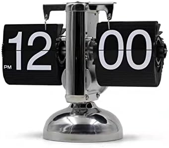 Flip Clock, Retro Desk Clock Vintage Design Auto Desk Clock with Large Number & Battery Powered Internal Gear Operated Clock for Home & Office Décor (Black)