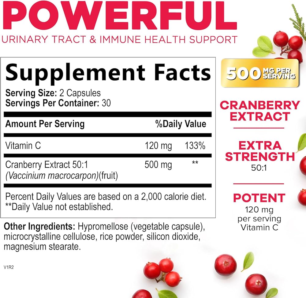 Powerful Immune Support: Support your immune system year-round with our Cranberry capsules, enriched with Vitamin C and Antioxidants for optimal urinary & bladder health support